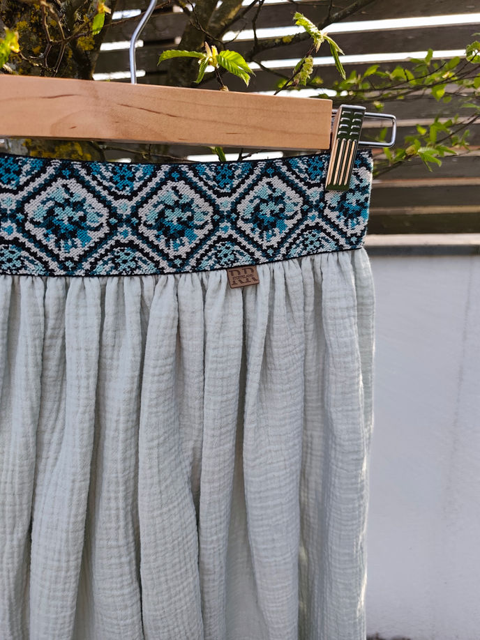 Dieser liebevoll gefertigte Musselin Trachtenrock vereint Leichtigkeit mit einem besonderen, traditionellen Detail.