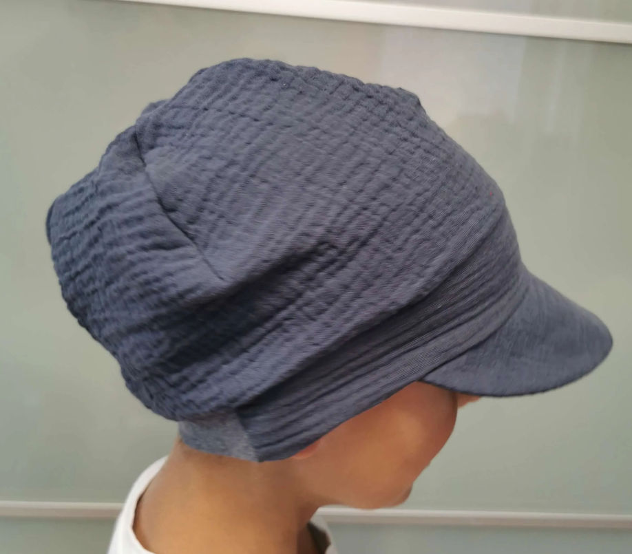 Die Sommerhaube „Milo“ ist eine leichte Kopfbedeckung mit Schild und ideal für warme Tage.